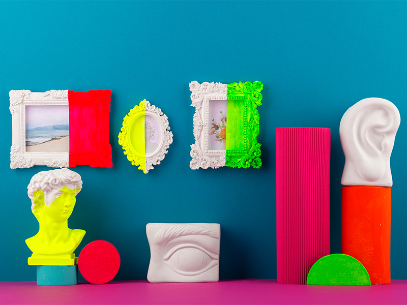 Постеры на фотобумаге в рамках. Могут быть любого размера, стандартные цвета рамок: матовый алюминий, матовое золото, черный. Возможно использование рамок для быстрой замены постера (система клик-клак).